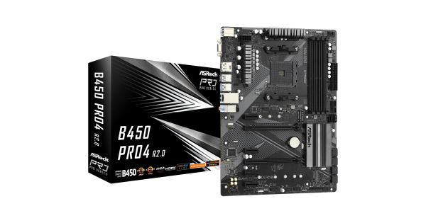 Мат.плата AM4 B450 ASRock B450 Pro4 R2.0 (ATX 4xDDR4 3200 HDMI 2xM.2)