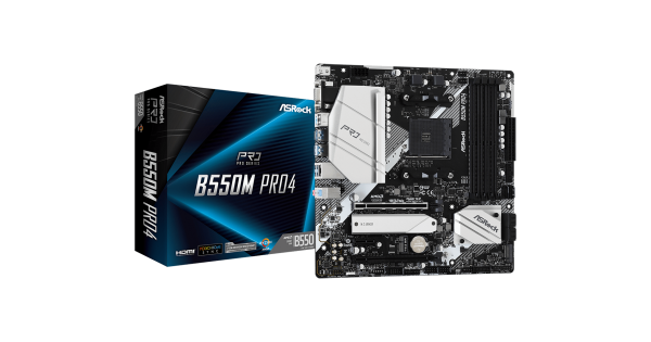 Мат.плата AM4 B550 ASRock B550M PRO4 (mATX 4xDDR4 4533 HDMI 1xM.2 RGB)